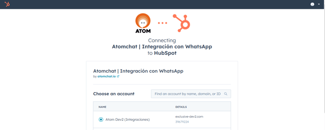 Serás redirigido a la pantalla de autorización de HubSpot.