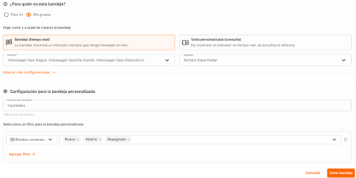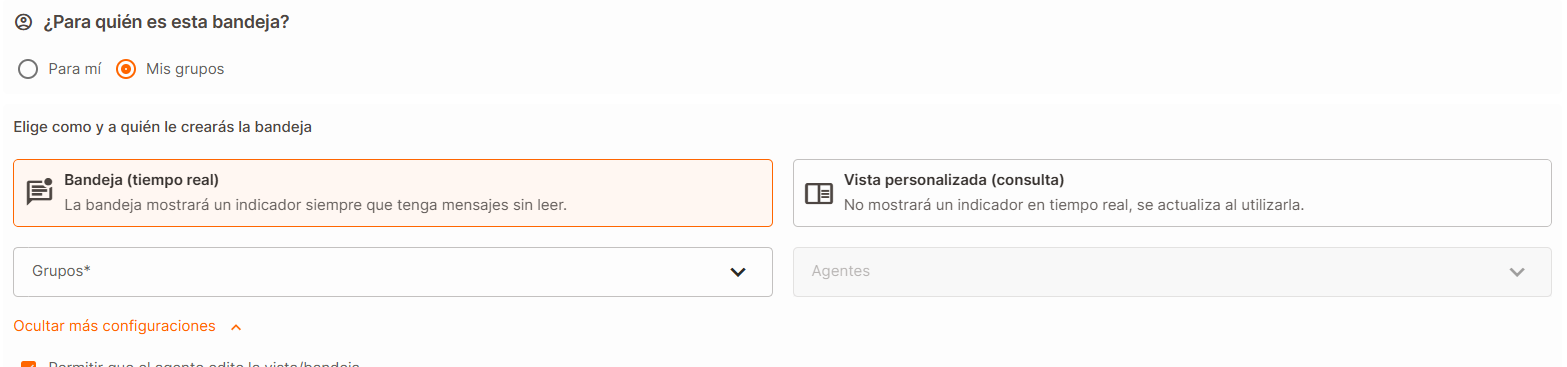 Al crear bandejas o vistas para agentes, puedes decidir: