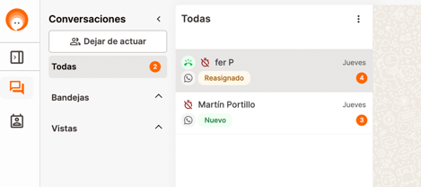 - 🟠 Color naranja: La conversación lleva un tiempo de 3 a 10 minutos sin respuesta al cliente.