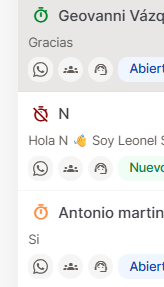 - 🟢 Color verde: La conversación lleva un tiempo de 1-3 minutos sin respuesta al cliente.