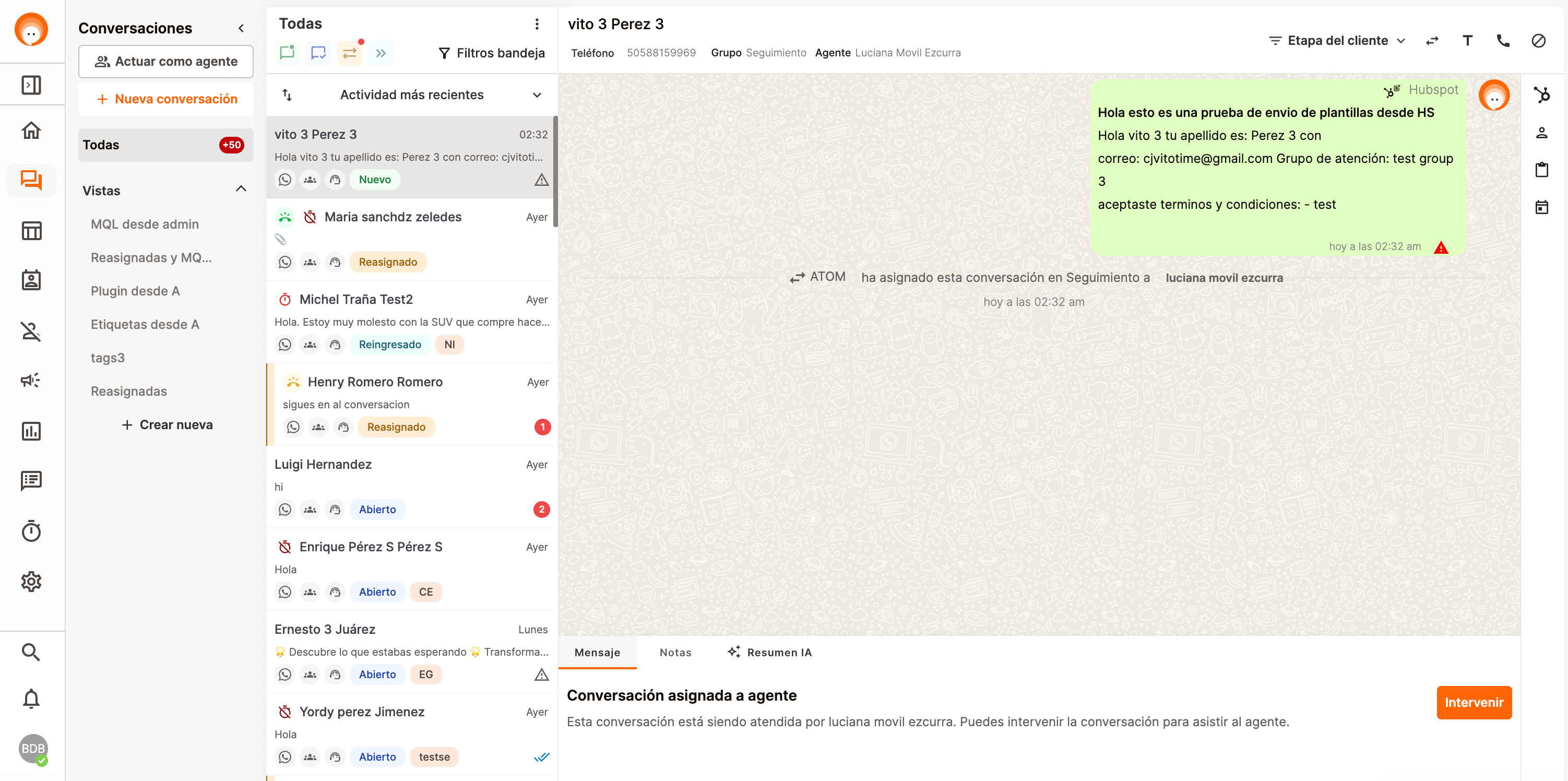 - Asignar la conversación.
