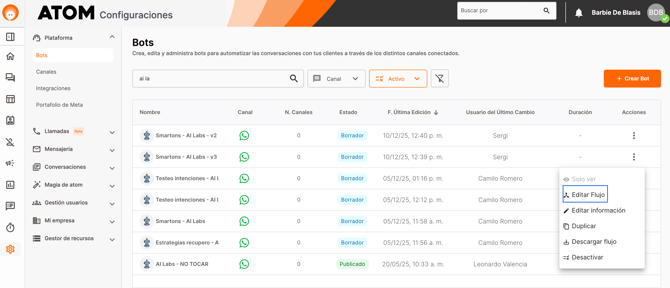 Una vez migrado el flujo, desde la configuración del Smarton puedes: