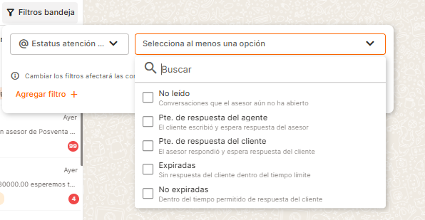 Como agente, tu bandeja puede llenarse rápido de conversaciones. Los filtros existen para ayudarte a priorizar, organizarte mejor y no perder conversaciones importantes.