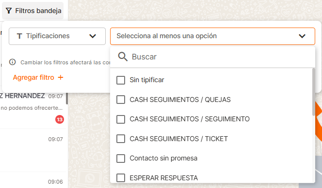 - Sin tipificar: Opción que permite visualizar las conversaciones que aún están pendientes de tipificación.