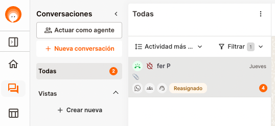 💡 Esto te permite identificar rápidamente qué conversaciones llegaron a tu bandeja por reasignación.
