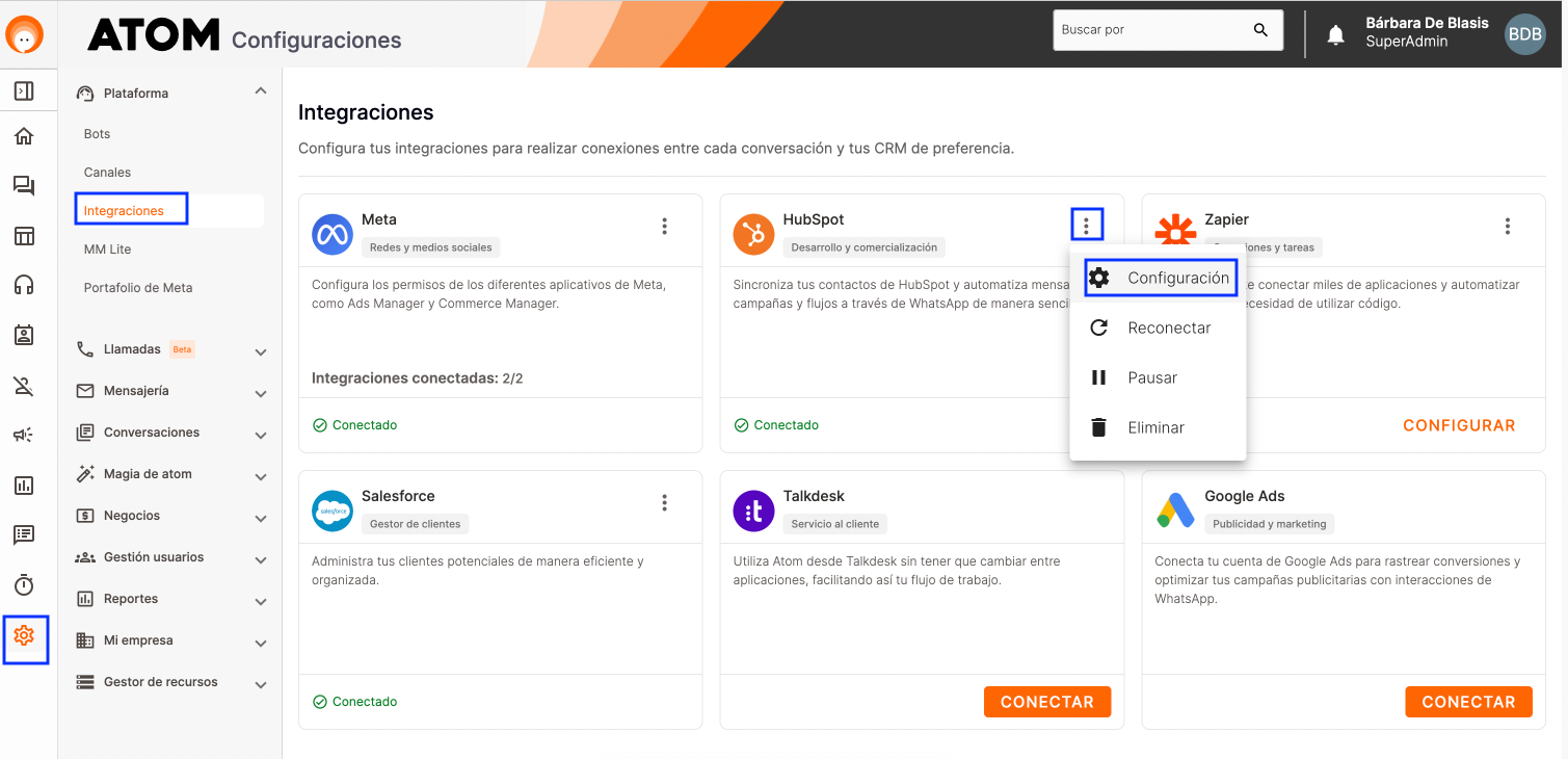🔹 Opción 1: Configuración con HubSpot (integración nativa)