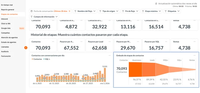 - Criar campanhas com foco na etapa atual do contato.